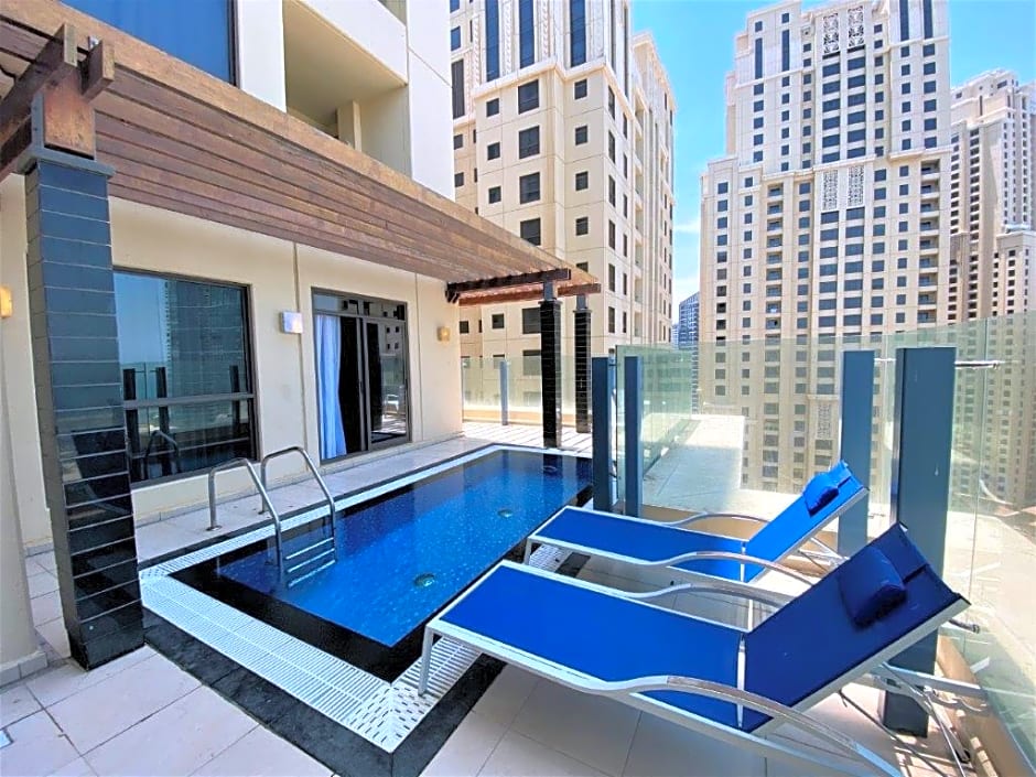 Accommodations span a wide range of apartment-style options, from 1 Bedroom to 4 Bedroom layouts, with views labeled Sea View, Marina View, Harbour View, or City View. Some residences come with Private Pools, such as the Penthouse Apartment with a Private Pool or a Room with a Private Pool, while others like Duplex Apartments and Loft units suit larger groups. These configurations accommodate anywhere from 1 up to 10 adults, offering flexibility for solo travelers, families, and gatherings.